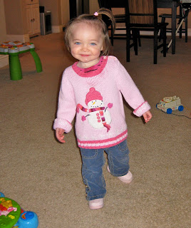 So far, this is my favorite age! Rachel is still not talking but does a lot of babbling, especially if she's on the phone (toy phone that is). She understands a lot of what we say to her and sometimes I feel like she just thinks we are big dorks and is too smart for us. If you ask to see her belly button she will pull up her shirt and point to it, so cute. She likes to hide under a towel and pop out only after you shout, "Where is Rachel?" She hates to be told "no" and will scream and yell at you if you dare do. Rachel has all of her teeth now but still doesn't eat much, mostly fruit and yogurt. She loves playing at the park and can climb all the way up to the slide by herself, turn around so she is on her belly and slide down. Her favorite is still the swing though. She is walking like a champ, very steady and graceful, most of the time. She likes to take all of her toys and put them over the safety gate in our den where she can't get to them, this doesn't make sense to us but it seems to be part of her master plan. Rachel LOVES going to music class every week and learning new songs and checking out the instruments. She still loves water and looks forward to her bath every night, she likes to take my hand and walk me down the hall to the bathroom, this means it's bath time. Rachel loves to laugh, it's her favorite, she will even force a laugh to get our attention. She is a funny, sweet, loving, beautiful little girl and I'm the luckies mommy in the world!